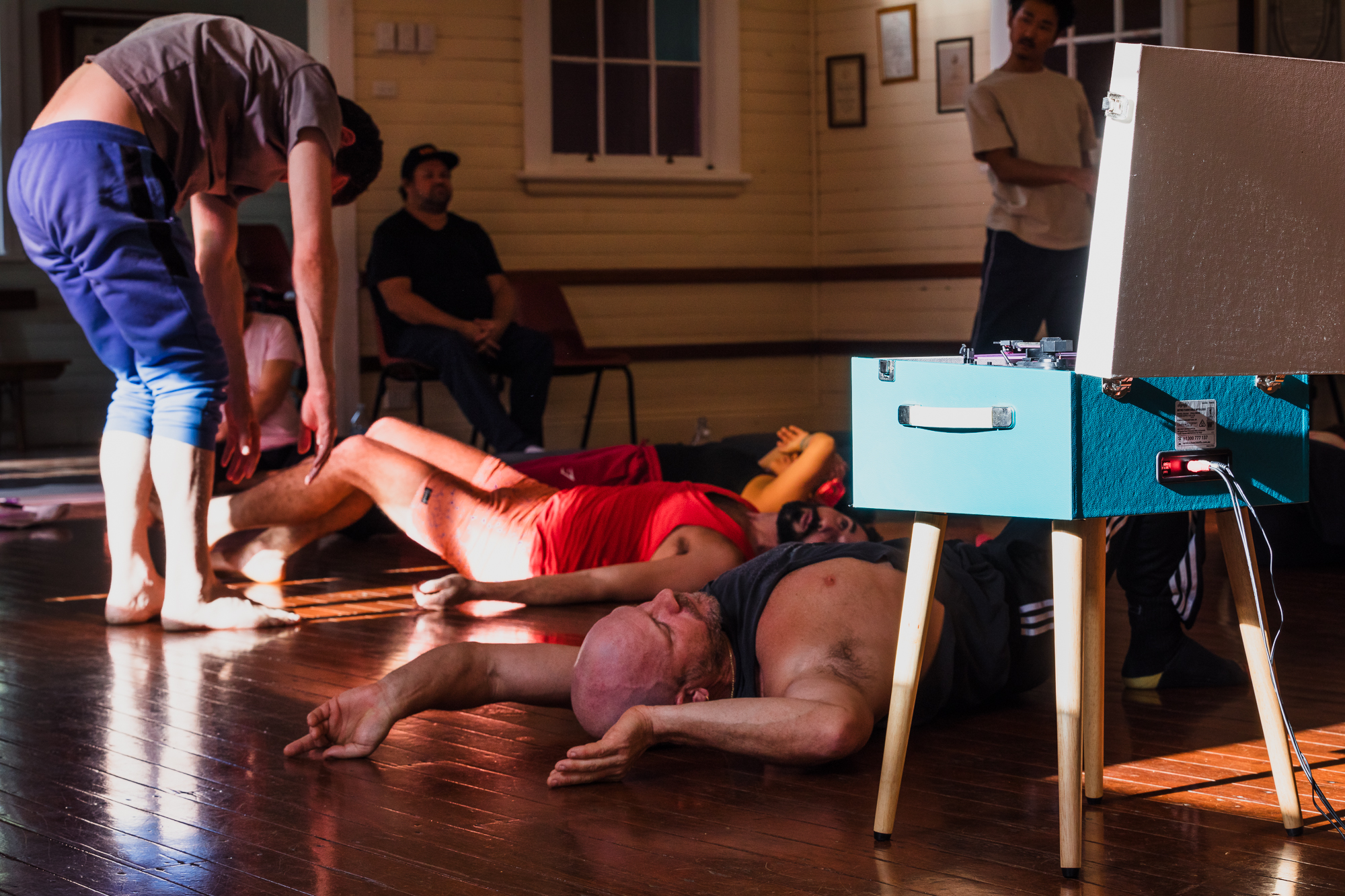 On Saturday 27 July, 17 artists attended PRACTICE AND PLAY at the Clunes Coronation Hall, located in the charming village of Clunes in the Northern Rivers Hinterland. In addition were baby Eros, just 5 months old, and two fur babies, Chocolate Pudding Sparkle Cupcake and Brad The Junior Pitt, a delightful mother and son long-haired Chihuahua duo who are avid arts aficionado’s specialising in contemporary performance making. The group’s creative background spanned dance, circus, experimental performance, cabaret, burlesque, music, photography and construction.