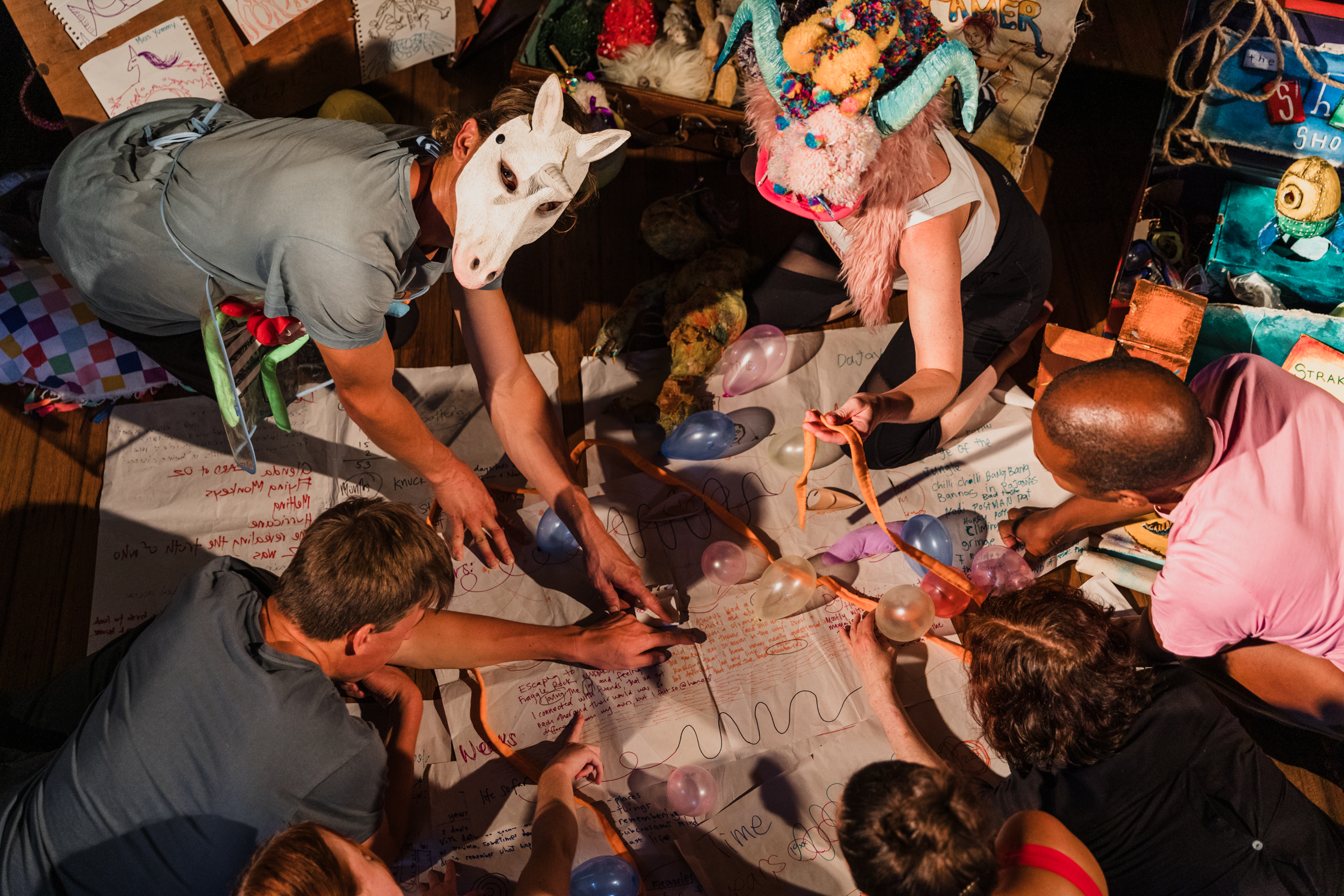 The residency brought together 12 independent artists from diverse disciplines, including dance, theatre, experimental performance, cabaret, circus, puppetry and stand up. Core participants included: Marianna Joslin, Anna Straker and Shar Mitchell, alongside Delia Silvan, Alya and Ori Manzart and Philip Channells (Creative Producer). They were joined by guest artists Sean Campbell, Diana A. Zamudio Diaz, Harry Morrissey, Mayu Muto and Amani Wiriyanjara whose invaluable contributions helped shape the residency’s uncharted outcomes.